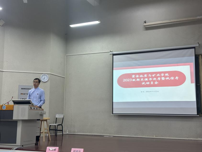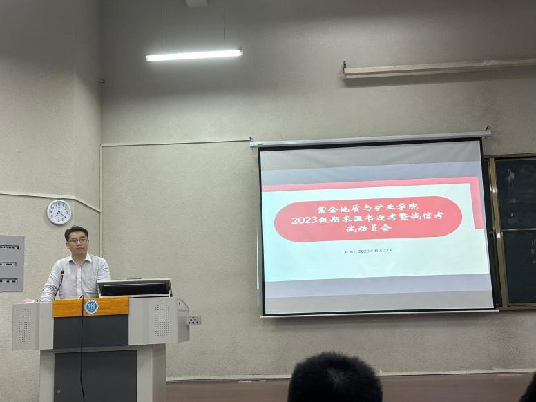 接着,胡建华副院长对同学们的学习态度、班级的学风建设提出了更高要求。胡建华副院长了解学生是否有学习上的困难,鼓励同学间互相帮助,助力期考。他亲切地讲述了他充满青春热血的大学经历,激励同学们为即将到来的考试做好准备,提醒同学合理分配时间,关注基础科目成绩,提高学习的自觉性、主动性。此外,他还分析介绍了当下矿业就业形势和行业发展新态势,鼓励学生成为优秀的国际化人才,为矿业作出贡献。诚信是一种品质,也是一种态度。
