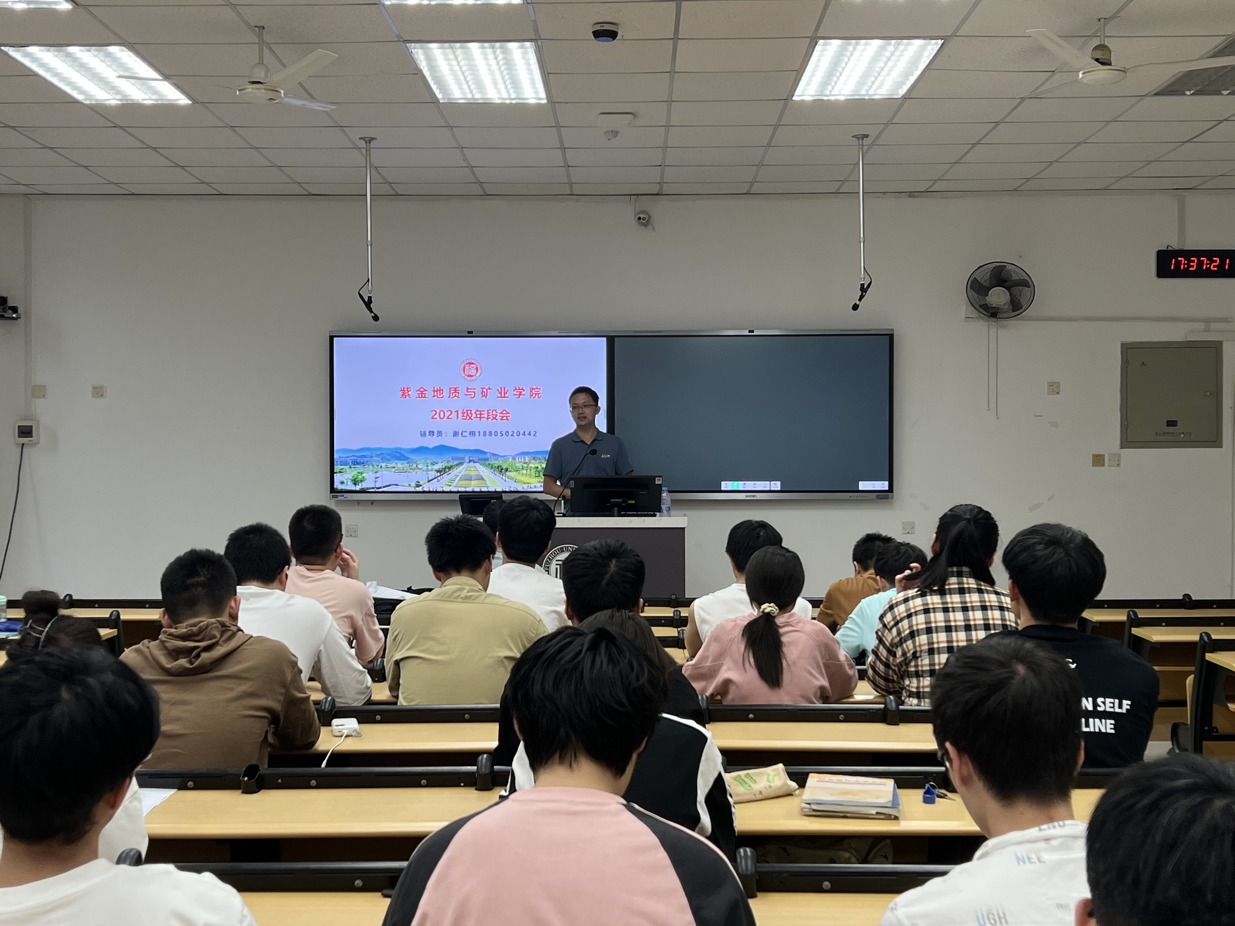 为迎接营造期末复习迎考的良好氛围,强调做好端午假期安全教育工作,5月30日下午,紫金地质与矿业学院2021级本科生地质工程专业班会于西一303教室举行,2021级地质工程专业全体本科生参加。会议由辅导员谢仁栩老师主持。