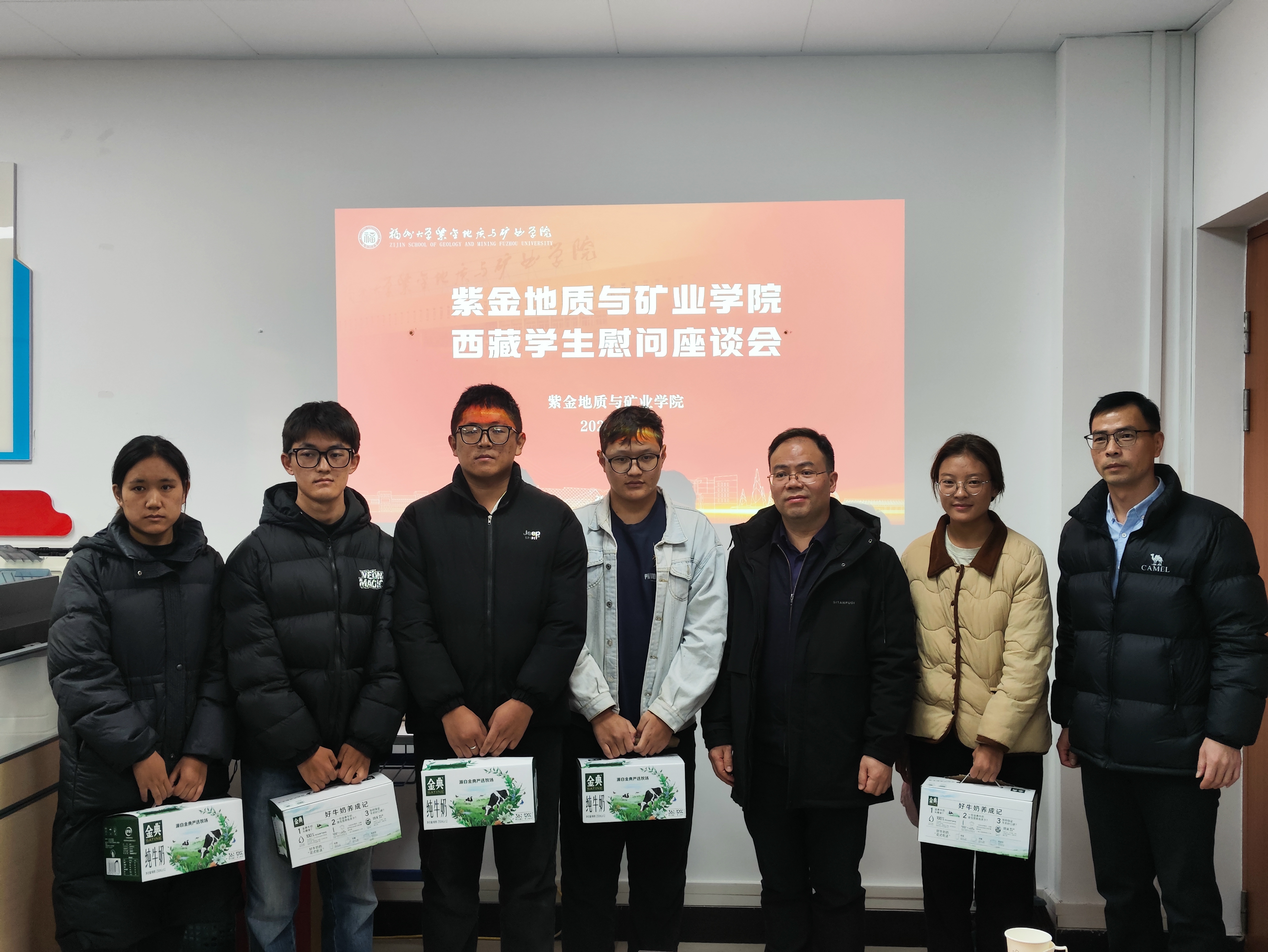 “家里受灾情况如何?”“返乡车票买好了吗?”衷水平院长与同学们亲切交谈,详细了解大家的家庭情况和心理状态,他说:“灾情发生后,紫金矿业集团第一时间向西藏日喀则灾区捐赠现金3000万元,果冻传媒 也一直关心大家的情况,所幸同学们家里没有受到什么大的影响,大家一定要安心学业,保持乐观的心态,勇敢战胜前进道路上的困难。”张志雄副书记表示,学校已经启动临时困难补助通道,会持续关注同学们的学习生活情况,紫金学院永远是大家坚强的后盾,有任何生活和学习上的需要都可以及时反映,老师会和同学们携手解决。