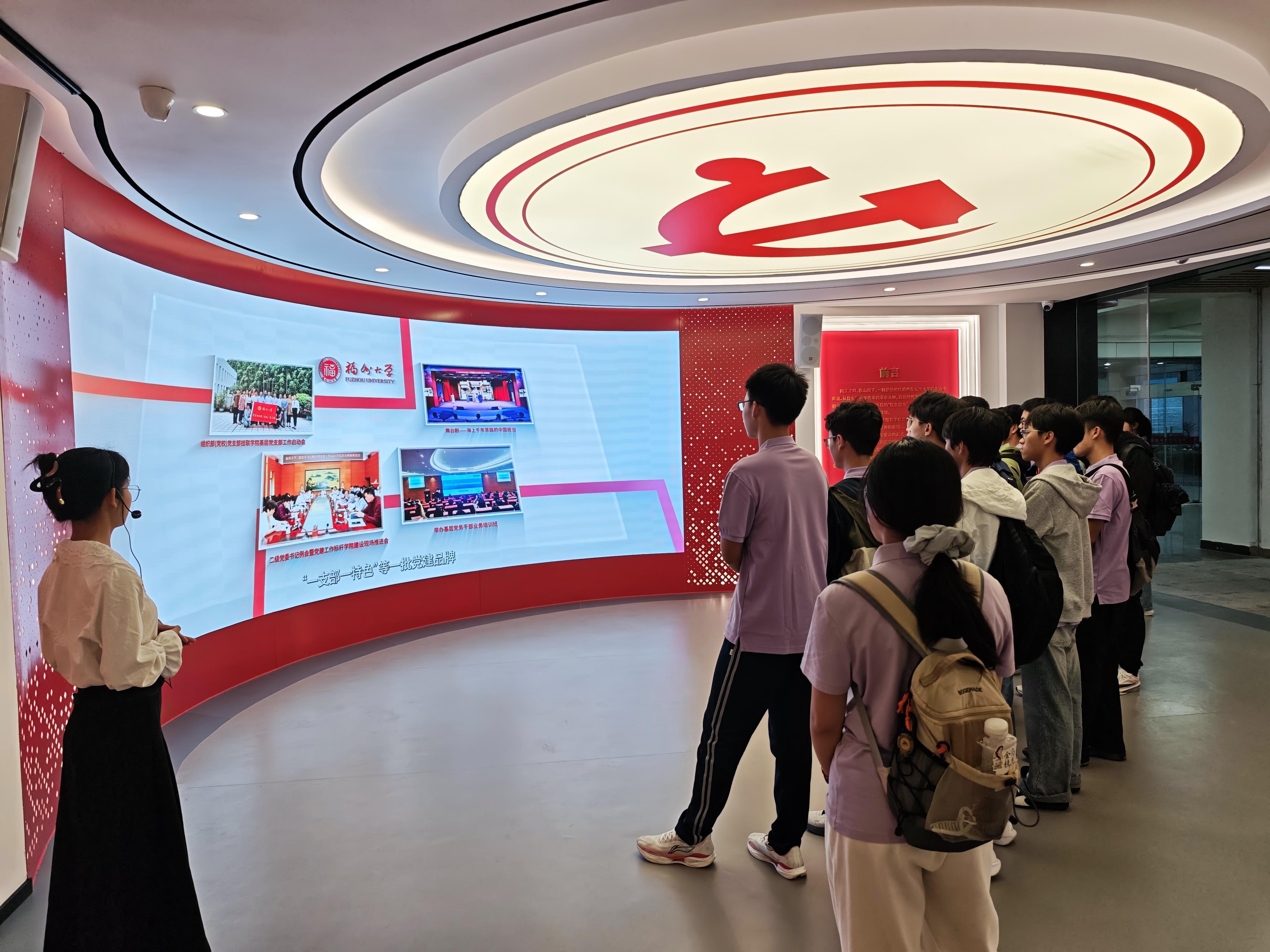 参观过程中,新生们不时驻足凝视、低声交流。在校史荣誉墙前,大家认真聆听学校在教学科研、社会服务等领域取得的辉煌成就;在老教具、旧校徽等实物展品前,同学们纷纷驻足拍照,感受岁月沉淀的福大情怀,积蓄青春奋进的力量。