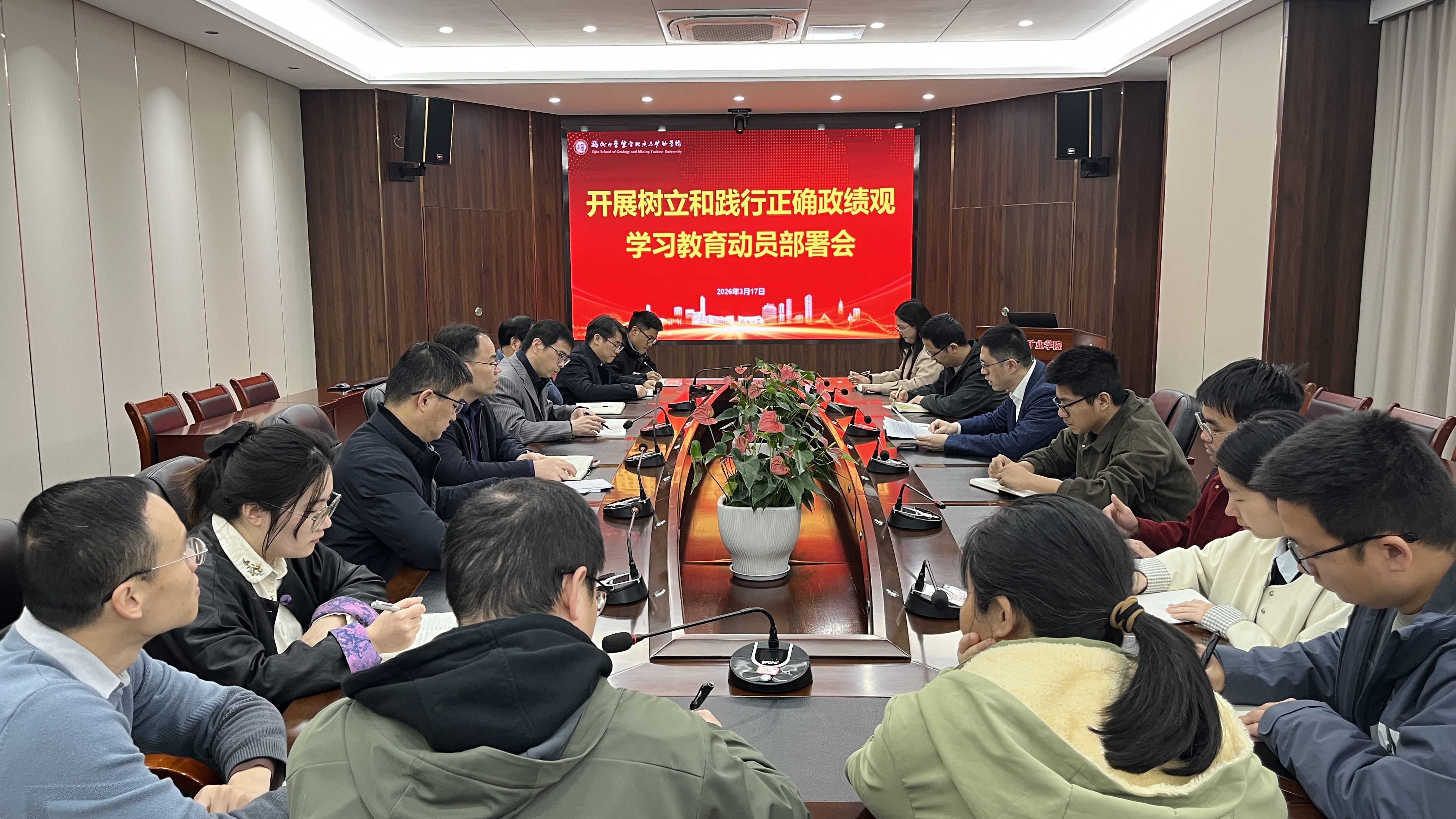 3月17日,学院召开树立和践行正确政绩观学习教育动员部署会。学院党委委员、党委组织员、教工党支部书记、支部委员参加会议,学院党委书记郑寿主持会议。